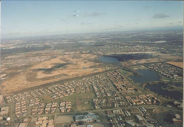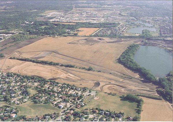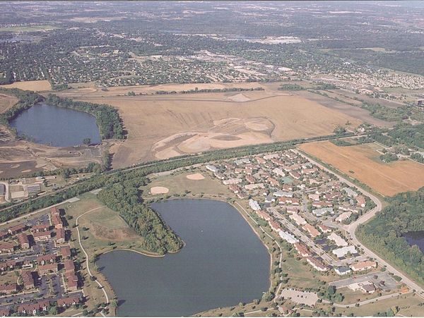 Overall view looking north from Hawthorn Pky. Lake Charles near center.